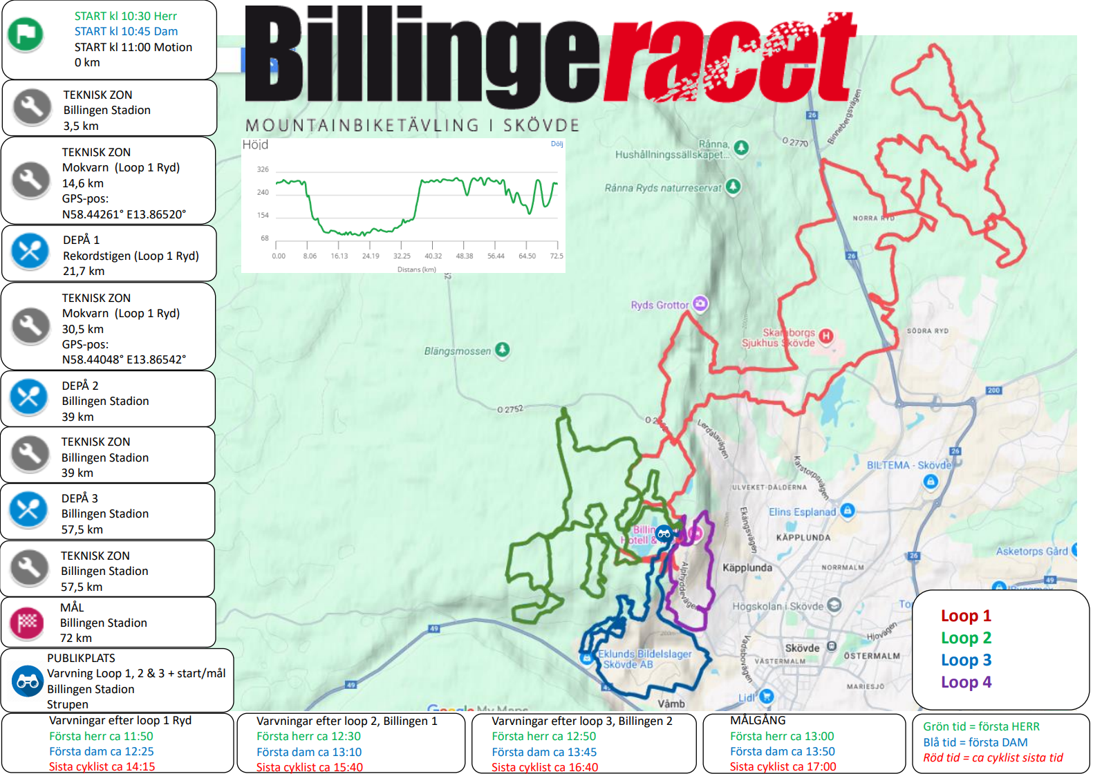 I år har vi fyra loopar. Vi börjar med Rydsloopen för att sedan ta oss tillbaka till billingen och stigarna där.